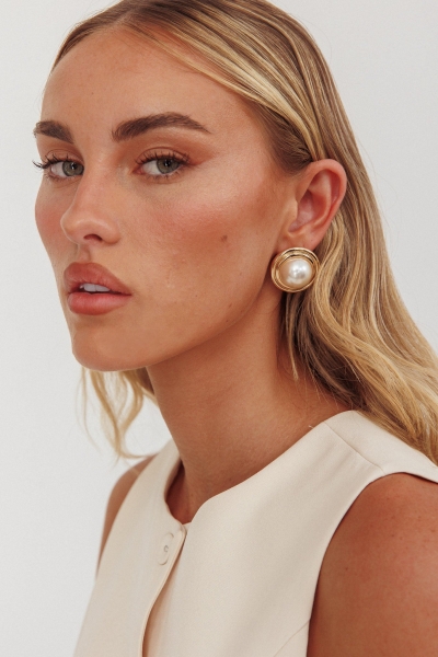 Nailah Pearl Cabochon Earrings Gold/Pearl
