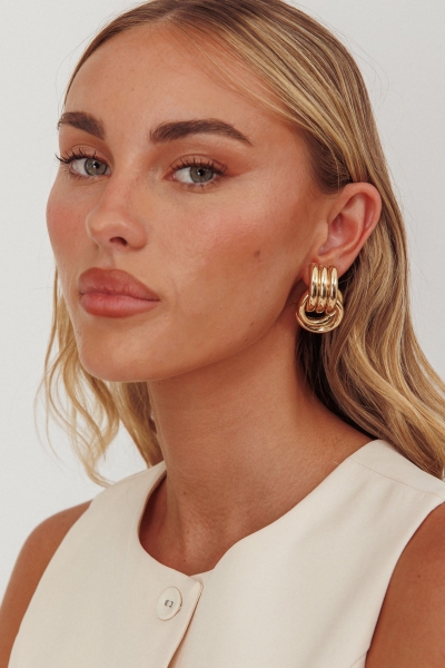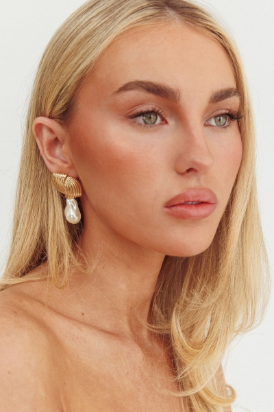 Andi Ridged Pearl Drop Stud Earrings Gold/Pearl